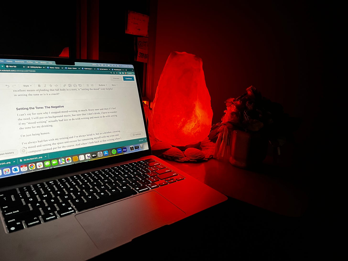 I can’t say for sure why I stopped mood-writing so much. Every now and then if I feel the need, I will put on background music, but now that I don’t drink, I have to wonder if my “mood writing” actually had less to do with writing and more to do with setting the tone for my drinking.